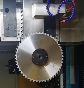 五軸鋸切機(jī)采用灰鐵300鑄件床身,整機(jī)重約為6噸,切割剛性強(qiáng),抖動(dòng)性小,利用高速切割,精度高、延長鋸片壽命、切割工件表面光潔、一致性強(qiáng)。